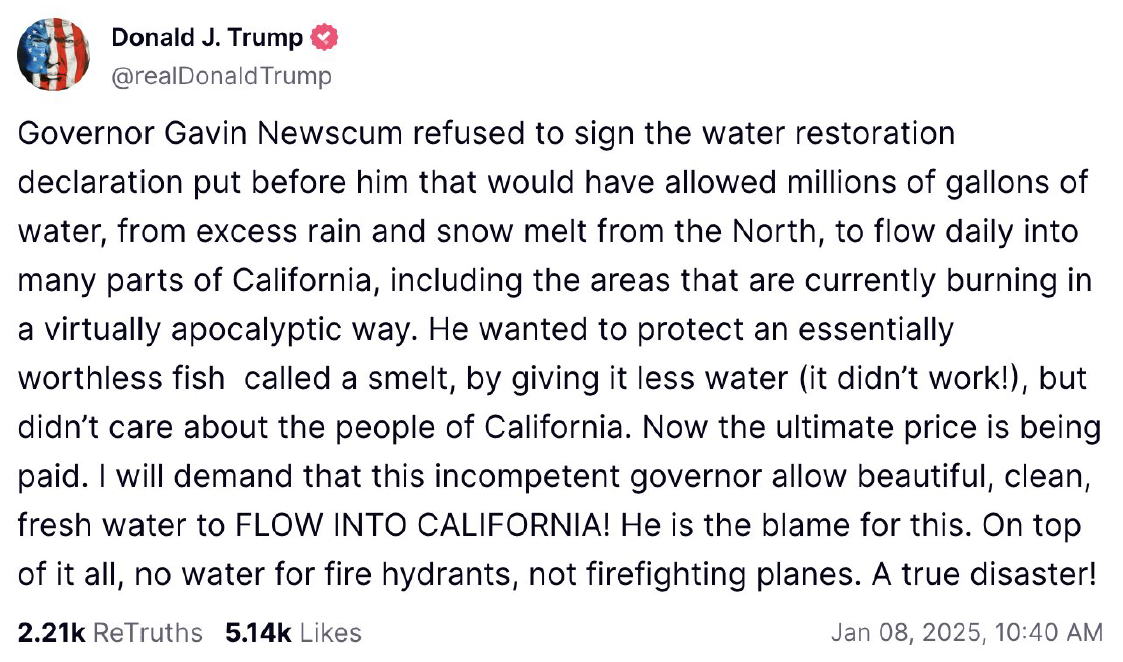 An annotated guide to the President-elect’s* January 8 tweet on California water and wildfires