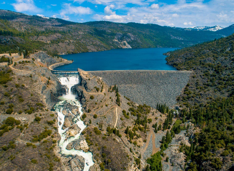 In 2023, Hell Hole Reservoir spilled uncontrolled as water exceeded the spillway’s fixed elevation. Credit: Placer County Water Agency