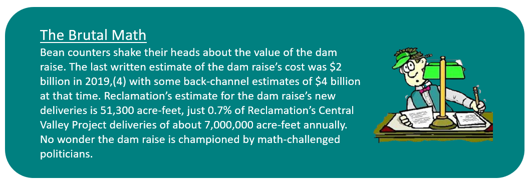 Now with the opportunity to affirm the delusional conclusions of their 2020 Supplemental FEIS, and some taxpayer money burning a hole in the U.S. Bureau of Reclamation/Department of the Interior’s pocket, the Trump Administration could start to move to construction rather quickly — just as the agricultural leaders’ letter recommends.